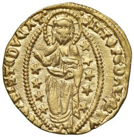 Au gr.3,53 S. Marco nimbato, stante a s., porge il vessillo al Doge genuflesso R/ Il Redentore entro un’aureola ellittica stellata. Mont. 150 Fr. 1231