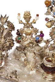 gruppo in argento, cristallo, pietre dure e vetri colorati, cm 26,5x27x19