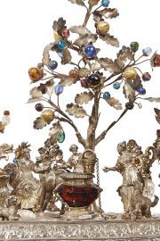 Sicilian school, first half 18th century, Samaritan at the well, silver, crystal, semi-precious stones and coloured glass group