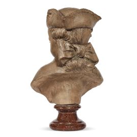 French School, 18th century, a bust of young man with hat, patinated terracotta