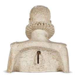 Il busto, che effigia un personaggio al momento sconosciuto, sorprendente nella sua sintetica e geometrica astrazione dei volumi, si può attribuire a Taddeo Carlone. Scultore di origine ticinese e figlio d’arte – anche il padre Giovanni fu un prolifico e dotato scultore –, Taddeo fu il protagonista indiscusso della scultura in marmo a Genova nel secondo Cinquecento, come dimostrano le molteplici opere realizzate per la famiglia Doria, tra cui la grandiosa Fontana di Nettuno della Villa del Principe (1599-1601).