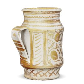 A PHARMACY JAR (ALBARELLO), DERUTA, SECOND HALF 15TH CENTURY