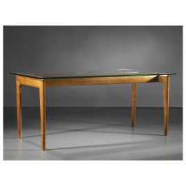 TABLE, WOODEN STRUCTURE, GLASS TOP