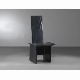 in legno, imbottite e rivestite in pelle nei toni del nero