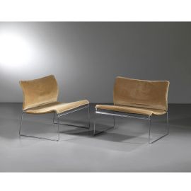 A COUPLE OF «SAGHI» CHAIRS AND A LOW TABLE, MIRRORED GLASS TOP