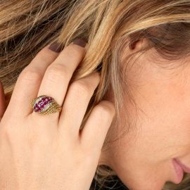 ANELLO A CUPOLA CON RUBINI E DIAMANTI