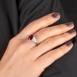 GARNET AND DIAMOND RING IN 18KT WHITE GOLD