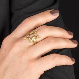 STAR SHAPED RING IN 18KT YELLOW GOLD WITH A 14KT BARRETTE BROOCH