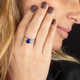 SAPPHIRE AND DIAMOND RING IN 18KT WHITE GOLD