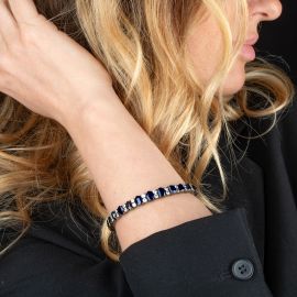 in metallo, impreziosito da zaffiri taglio ovale per ct 20 circa alternati a coppie di pietre sintetiche, lungh. cm 18,5. gr. 24