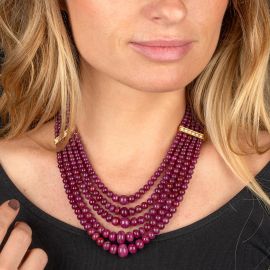 COLLANA MULTIFILO IN RADICE DI RUBINO