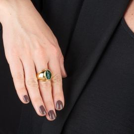 BIG CARVED EMERALD RING IN 18KT YELLOW GOLD