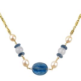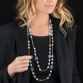 LONG PEARL AND CHALCEDONY NECKLACE IN 18KT YELLOW GOLD
