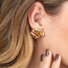 RUBY AND DIAMOND CLIP EARRINGS IN 18KT TWO TONE GOLD