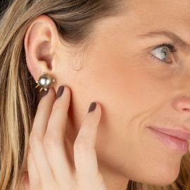 PAIO DI ORECCHINI CON PERLE GRIGIE E DIAMANTI