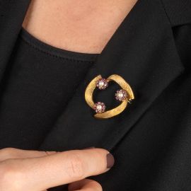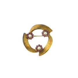 FLORAL BROOCH WITH A NECKLACE IN 18KT YELLOW GOLD