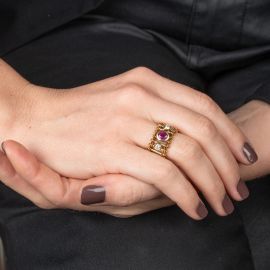 ANELLO A FASCIA CON RUBINO E DIAMANTI