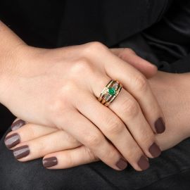 EMERALD AND DIAMOND BAND RING IN 18KT YELLOW GOLD