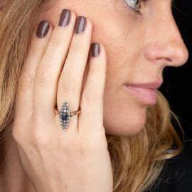 ANELLO A NAVETTE CON ZAFFIRO E DIAMANTI