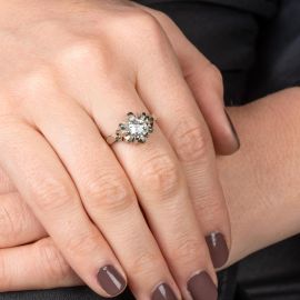 in oro bianco e giallo 18kt, diamante taglio vecchio (difetti) di ct 0.60 circa, mis. 17/57, gr. 4