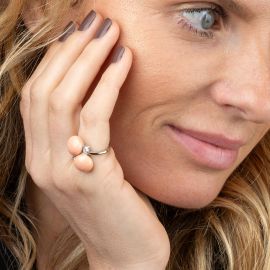 ROSE CORAL AND DIAMOND CONTRARIE RING IN 18KT WHITE GOLD