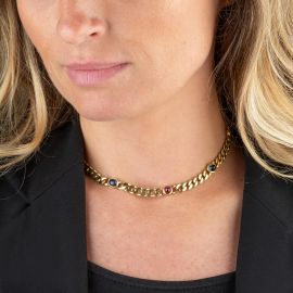 COLOURED STONE CHAIN NECKLACE IN 18KT YELLOW GOLD