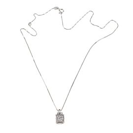 in oro bianco 18kt, con pendente impreziosito da diamanti taglio brillante e baguette per ct 0.50 circa, punzone 750, lungh. cm 39, gr. 2