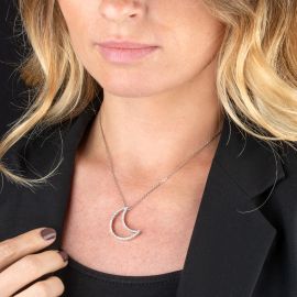 NECKLACE WITH A DIAMOND HALF-MOON PENDANT IN 18KT WHITE GOLD