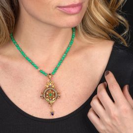 CHALCEDONY NECKLACE WITH A PENDANT/BROOCH IN 18KT YELLOW GOLD