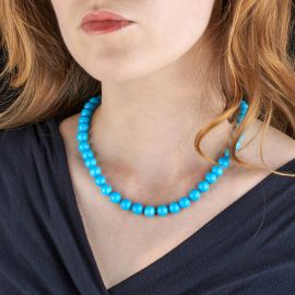 ad un filo di boules in turchese trattato di mm 8 circa, fermatura in oro 14kt, lungh. cm 45, gr. 44
