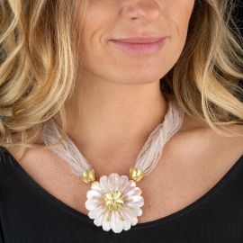 FLORAL MULTI-STRAND NECKLACE IN MOTHER OF PEARL AND 18KT YELLOW GOLD