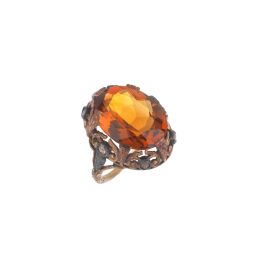 di cui uno in oro a basso titolo e argento, con al centro un quarzo citrino sfaccettato di ct 6 circa, circondato da rose di diamante, mis. 5/45, gr. 6; accompagnato da un secondo anello in oro giallo 18kt, con al centro una pietra sintetica, punzone 750, mis. 6/46, gr. 11