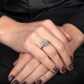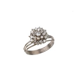 in oro bianco 18kt, impreziositi da due diamanti taglio antico per ct 1.30 circa, chiusura a vite, dim. cm 1x1 circa; accompagnati da un anello con diamanti taglio brillante e huit huit per ct 0.80 circa, mis. 12/52, gr. 8 complessivi