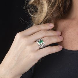 ANELLO A FASCIA CON SMERALDO E DIAMANTI