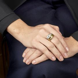in oro giallo e bianco 18kt, impreziosito da un diamante taglio vecchio di ct 1 circa e da diamanti taglio huit huit, mis. 17/57, gr. 12