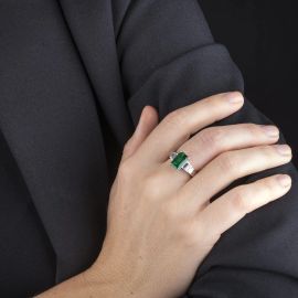 EMERALD AND DIAMOND RING IN 18KT WHITE GOLD