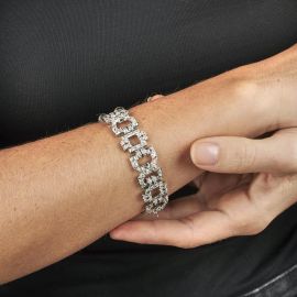 in oro bianco 18kt, composto da una serie concatenata di maglie geometriche impreziosite da diamanti taglio vecchio per ct 9 circa, lungh. cm 17, gr. 39