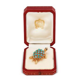 CARTIER TURQUOISE TURTLE BROOCH IN 18KT YELLOW GOLD