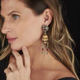 CODOGNATO PAIO DI LUNGHI ORECCHINI CON TESCHI PENDENTI