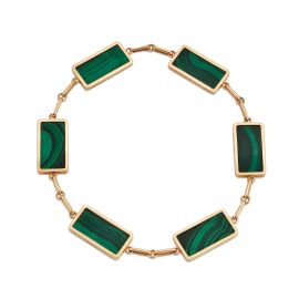 in oro giallo 18kt, con maglie in malachite di forma rettangolare, punzoni 750 e del fabbricante, lungh. cm 46, gr. 110