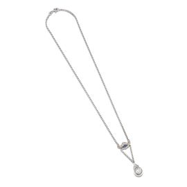 in oro bianco 18kt, con elemento pendente impreziosito da uno zaffiro taglio fantasia e diamanti taglio vecchio (uno mancante)per 0.20 circa, da cui pende un diamante taglio vecchio (difetti) di ct 1.30 circa, punzoni 750 e del fabbricante, lungh. cm 42, gr. 10