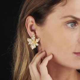 DIAMOND LEAF-SHAPED EARRINGS IN 18KT YELLOW GOLD