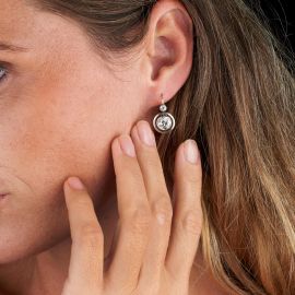 in oro e argento, impreziositi da due diamanti taglio vecchio per ct 3.50 circa e da due diamanti taglio vecchio per ct 0.30 circa, lungh. cm 3,5, gr. 5 complessivi