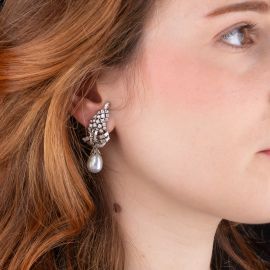 PAIO DI ORECCHINI PENDENTI CON PERLE E DIAMANTI