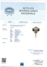 SPILLA CON PERLE NATURALI PIETRE DI COLORE E DIAMANTI