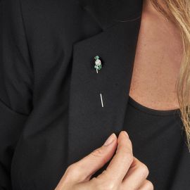 DIAMOND AND EMERALD PIN IN 18KT WHITE GOLD