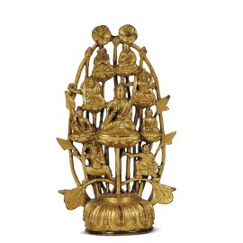 十八至十九世纪 铜胎后漆金莲花生菩提树 高19厘米