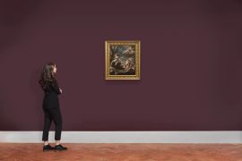Probabile bozzetto per la decorazione di un soffitto, forse non realizzata o ancora da identificare, il dipinto si lega anche per provenienza al castello di Hauteville nel Cantone di Vaud, e più precisamente agli affreschi nel Salone d’Onore illustranti episodi di storia antica entro cornici architettoniche. Sebbene l’autore di questi ultimi non sia ancora identificato, ne è evidente la cultura figurativa che declina un lessico di radice veneziana con le forzature anticlassiche tipiche della cultura d’Oltralpe.