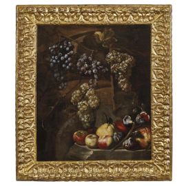 Incompiuto nei tralci di vite che avrebbero dovuto occuparne lo sfondo, questo inedito dipinto deve ricondursi a una fase relativamente precoce dell’attività di Michelangelo Cerquozzi come pittore di natura morta.