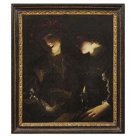 TWO YOUNG PEOPLE IN A INTERIOR BY CANDLELIGHT